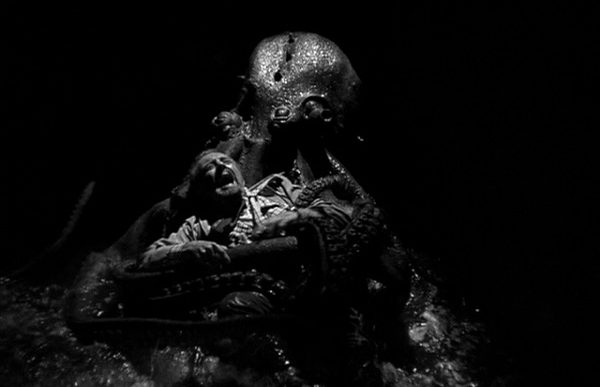 Now, there have been a lot of classic monsters in the history of cinema, but for me, none come close to The Octopus. If there is a single image that defines the laugh out loud brilliance of practical effects in trash cinema, it’s this big, beefy bastard from Bride of the Monster. The story of its origin is almost as famous as the movie itself. According to long-repeated production lore, Wood acquired the prop without its motor, leaving the tentacles completely inert.