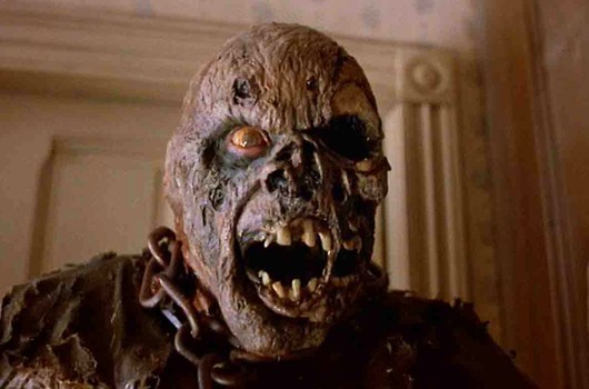 Directed by special effects legend John Carl Buechler, the character design is a masterpiece of 80s practical effects. Because Jason has been decomposing underwater, his skin is a translucent grey sludge. His spine is visible through the rotted fabric of his shirt. You can see his ribs, his kneecaps, and the way the chain around his neck has started to fuse with his flesh. He looks like he smells like a basement that’s been flooded for three years and then set on fire.​