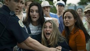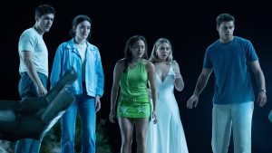The film begins as they always do, this time with five friends causing a car accident and covering it up. Included in this group of accidental killers are the soon-to-be bride, Danica (Outer Banks’ Madelyn Cline), her best friend, Ava (The Studio’s Chase Sui Wonders), Ava’s crush, Milo (Jonah Hauer-King), Danica’s fiancé, Teddy (Tyriq Withers), and past friend Stevie (Sarah Pidgeon).