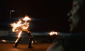“It’s so fun, I’m always trying to get more people involved, and I really love doing big crowd scenes,” Marc went on. “And if there’s a big, crowded action scene, it’s a lot of fun trying to coordinate everything. The way I tend to do things is that everything is always organised, and safe, and everyone knows where they’re supposed to be; and then you throw in elements like explosions or an ice cream van has to speed through a crowd of people: all those things have to be carefully mapped out to create a sense of chaos. Then, when it all comes together, there are so many variables, like what direction will the smoke come from? And will the ice cream van kick up enough dirt so it looks really exciting? And all those punches need to connect, when you’ve got all those people there to just help, and not trained in action. So, there’s a lot of things that can go wrong, which makes it exciting to get right. Oh, and there are guys on fire, of course: we’ve got guys on fire running around, so there are safety concerns to keep in place, and only then making sure the shot is as good as it can be to tell the story.”
