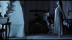Count Orlok’s physical presence is a blight upon the physical world that the characters inhabit. Mostly deep shadow, he is the opposite of life—Death personified as a nullification of light. The intrusion of a negative. I don’t know how much of Skarsgard’s appearance in Nosferatu is CGI and how much is prosthetics and makeup, but he is unrecognizable as Count Orlok. It’s a performance in which various elements of his physical being sometimes seem to work independent of one another—his eyes bulge as his voice rumbles and his mouth snarls, and his arms gracefully float with the ease of a dancer. This is a night terror come to life.
