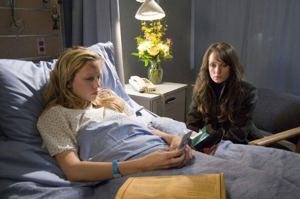 But there are other threats to the sororities, all cogs in the same machine. Across all three films, the police are some combination of indifferent and incompetent. While not an active threat, the sororities’ reliance on the police, as they’ve been raised to do, becomes a hindrance. Morgan’s police claim that they cannot get to the house for at least two hours—though presumably response time was much better after the house caught on fire (bringing to mind the old advice that if attacked on the street, yell “fire” rather than “help” because no one responds to calls for help.) In both 1974 and 2019, the sisters confront the police/campus security directly about their missing friend and are dismissed. In 1974, however, once Clare’s boyfriend, Chris, shows up at the station, the police are suddenly quite concerned with Clare’s whereabouts. In 2019, campus police are dismissive in an elaborate way: whereas Nash in 1974 seems mostly bored, the police in 2019 actually cuts Riley off, then takes her half-finished sentences to construct outlandish scenarios (or realistic scenarios framed in outlandish ways). It’s not a mere dismissal of the women’s concerns, but a dismissal of their actual perception of the world.  The worst offense by the police, however, occurs at the end of 1974. They breach the house, after Jess has already dealt with a possible killer. They sedate her and put her to bed. They fill her room, elbow to elbow, talking about her and the other women—“what about the other bodies?”—as if Jess herself is a corpse, ignoring that Clare’s father is still there with them. Then they leave her to escort a single man to the hospital. The message is clear: their work is done; or rather, she has done their work for them. She is of no more consequence to them.