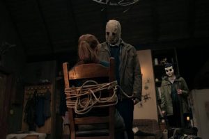 But unfortunately, it just feels like a soulless rehash of the original film. The killers basically spend the entire movie toying with their victims, so we get almost the exact same scares we saw back in 2008. To take just one example, there’s a scene where Maya is taking a shower, and unbeknownst to her, one of the villains walks right up to the shower and stands outside it for a few seconds without being noticed.