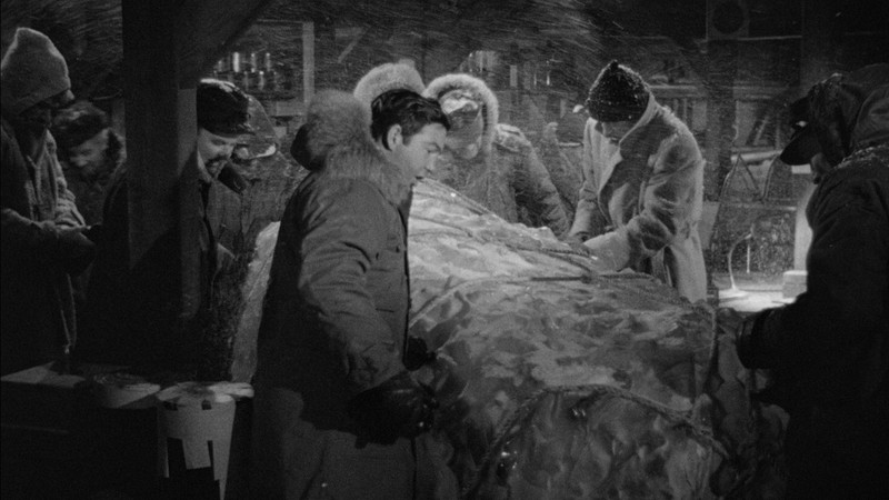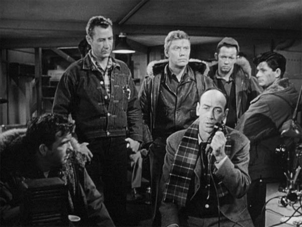 The Crew: The film focuses on Captain Patrick Hendry (Kenneth Tobey) and his crew of Air Force guys sent to a remote Arctic research station. They aren’t brooding loners; they’re professionals who actually like each other. They joke, they rib one another, and they treat the discovery of a crashed flying saucer like a particularly interesting day at the office—until things go south.